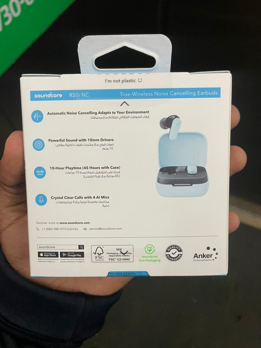 Enjoy immersive sound with the Anker Soundcore R50i NC earbuds, featuring adaptive active noise cancellation up to 42dB and powerful 10mm drivers with BassUp™ technology. With up to 40 hours of total playtime, AI-enhanced calls, and IPX5 water resistance, these true wireless earbuds are perfect for music, calls, gaming, and workouts.