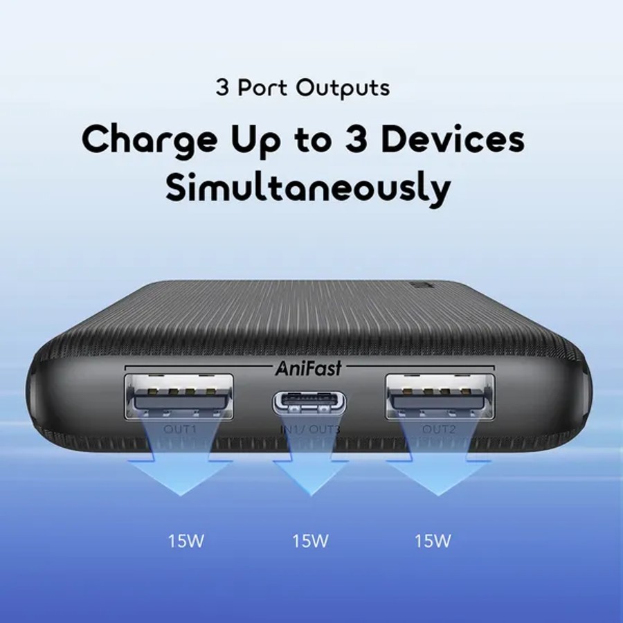 2× USB-A, 1× Type-C (In/Out)