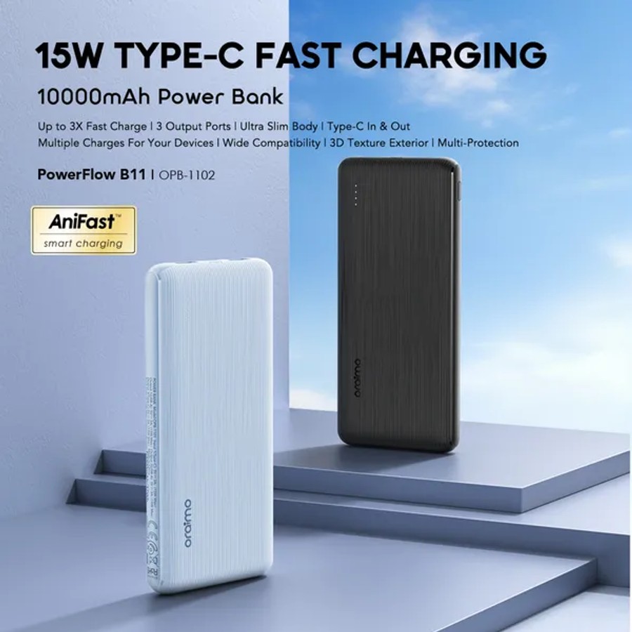 Catalog/Phone Accessories/Phone Accessories/Power Banks/Oraimo PowerFlow B11 10000mAh 15W Power Bank – Type-C In/Out, Dual USB, Fast Charging